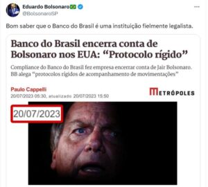 Com apenas um print, o deputado Eduardo Bolsonaro expôs a hipocrisa do BB e mostrou que banco já agiu contra Jair Bolsonaro: