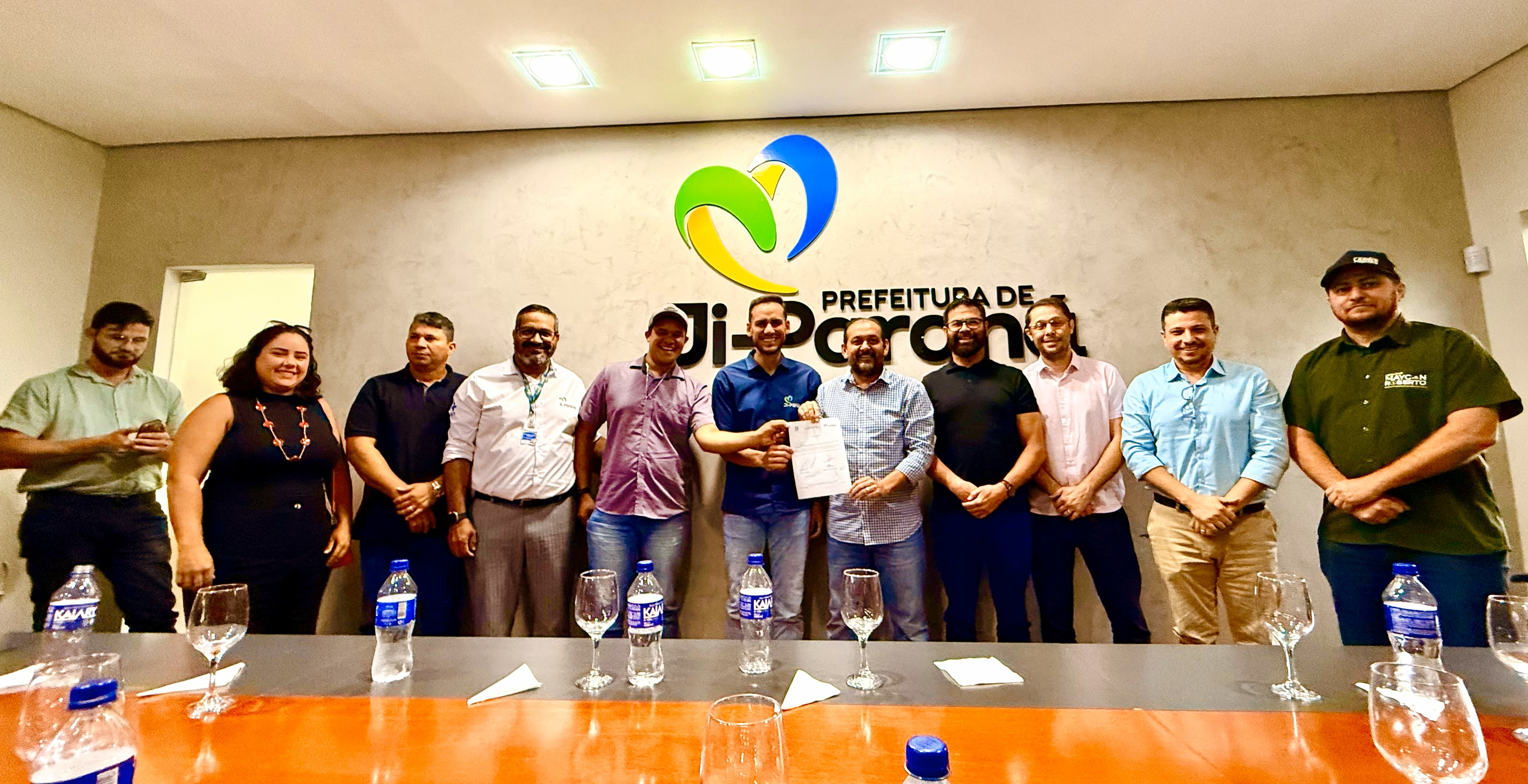 A assinatura aconteceu na sede da Prefeitura de Ji-Paraná e contou com a presença dos vereadores Wesley Brito, Scopony, Edinho Fidélis, Michael, Jéssica e Bruno, além de outras lideranças locais.