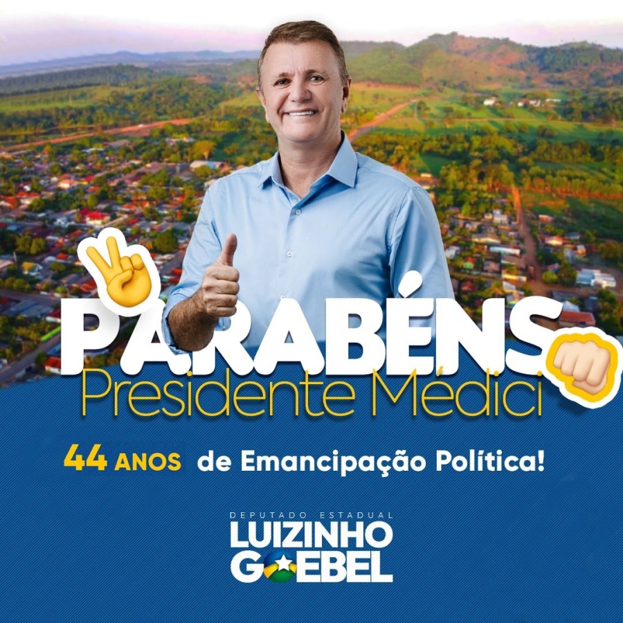 O município de Presidente Médici comemora, na segunda-feira, 16 de junho, seus 44 anos de emancipação político-administrativa, e o deputado estadual Luizinho Goebel fez questão de prestar homenagem à cidade e seus moradores.