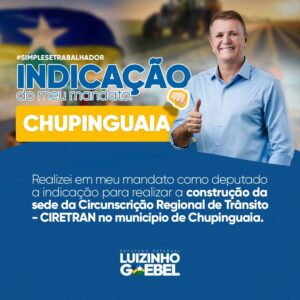 No contexto do desenvolvimento regional, o deputado Luizinho Goebel fez uma significativa indicação ao governo do estado, propondo a construção de uma nova sede da Ciretran em Chupinguaia. Esta ação visa melhorar o atendimento e facilitar o acesso dos cidadãos aos serviços de habilitação e registro de veículos.