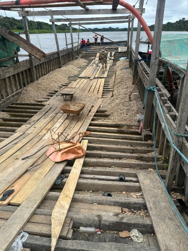 Uma operação conjunta realizada entre segunda-feira (26) e esta quarta-feira (28) resultou na inutilização de uma draga utilizada na extração clandestina de diamantes no rio Guaporé, na região de fronteira entre Brasil e Bolívia.
