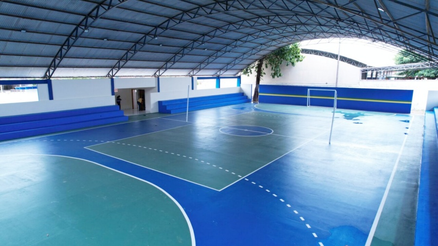 Escola Estadual Plácido de Castro recebeu reforma geral da quadra, troca de luminárias, recuperação dos vestiários e arquibancadas, melhorias na parte elétrica e telhado, além da pintura completa da fachada e dos muros