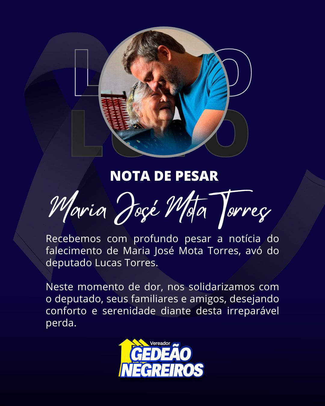 Com profundo pesar, recebi a notícia sobre o falecimento da psicóloga Maria José Mota Torres, que dedicou sua vida ao cuidado com as pessoas e aos serviços prestados ao estado de Rondônia.