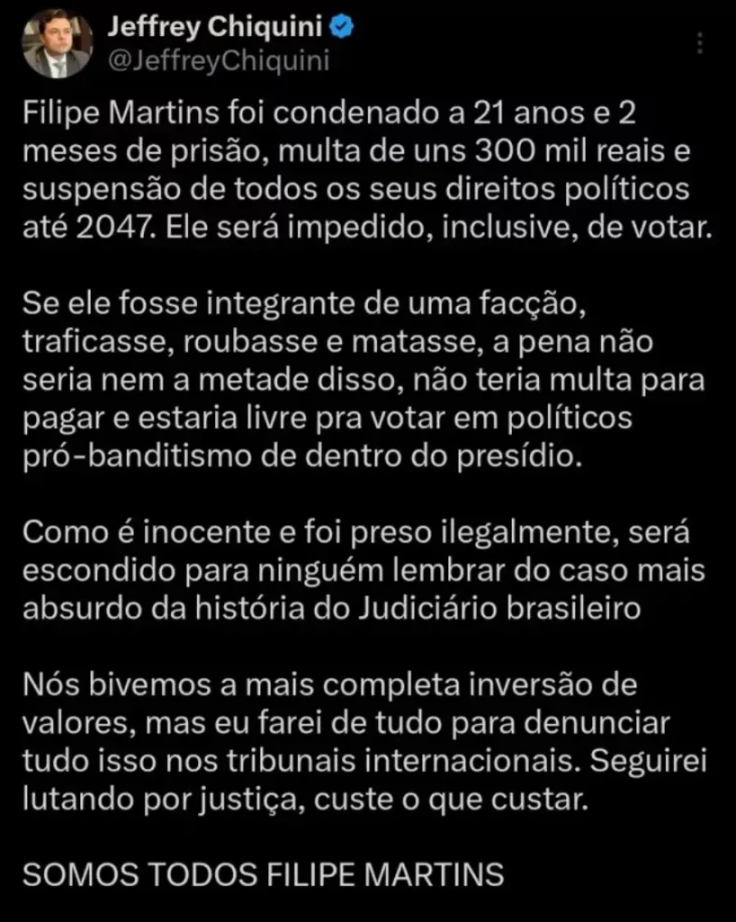 Em meio a uma montanha de abusos e injustiças, o caso de Filipe Martins figura entre os mais absurdos.