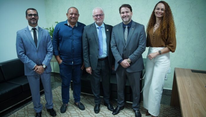 O presidente da Assembleia Legislativa de Rondônia (ALE/RO), Alex Redano (Republicanos), recebeu a visita do presidente da Associação Brasileira de Câmaras Municipais (ABRACAM), Rogério Rodrigues da Silva, acompanhado do vereador de Cacaulândia, Antônio Pereira da Silva (PP).